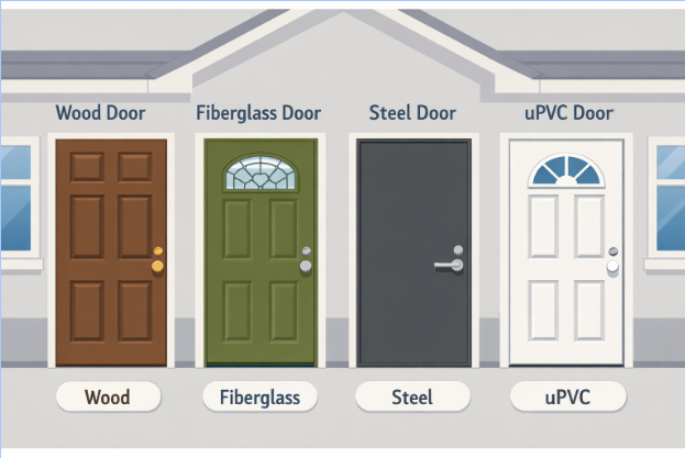 - uPVC: Unplasticized polyvinyl chloride doors are durable and provide solid insulation. Their minimal maintenance requirements and range of styles make them ideal for modern, practical living.